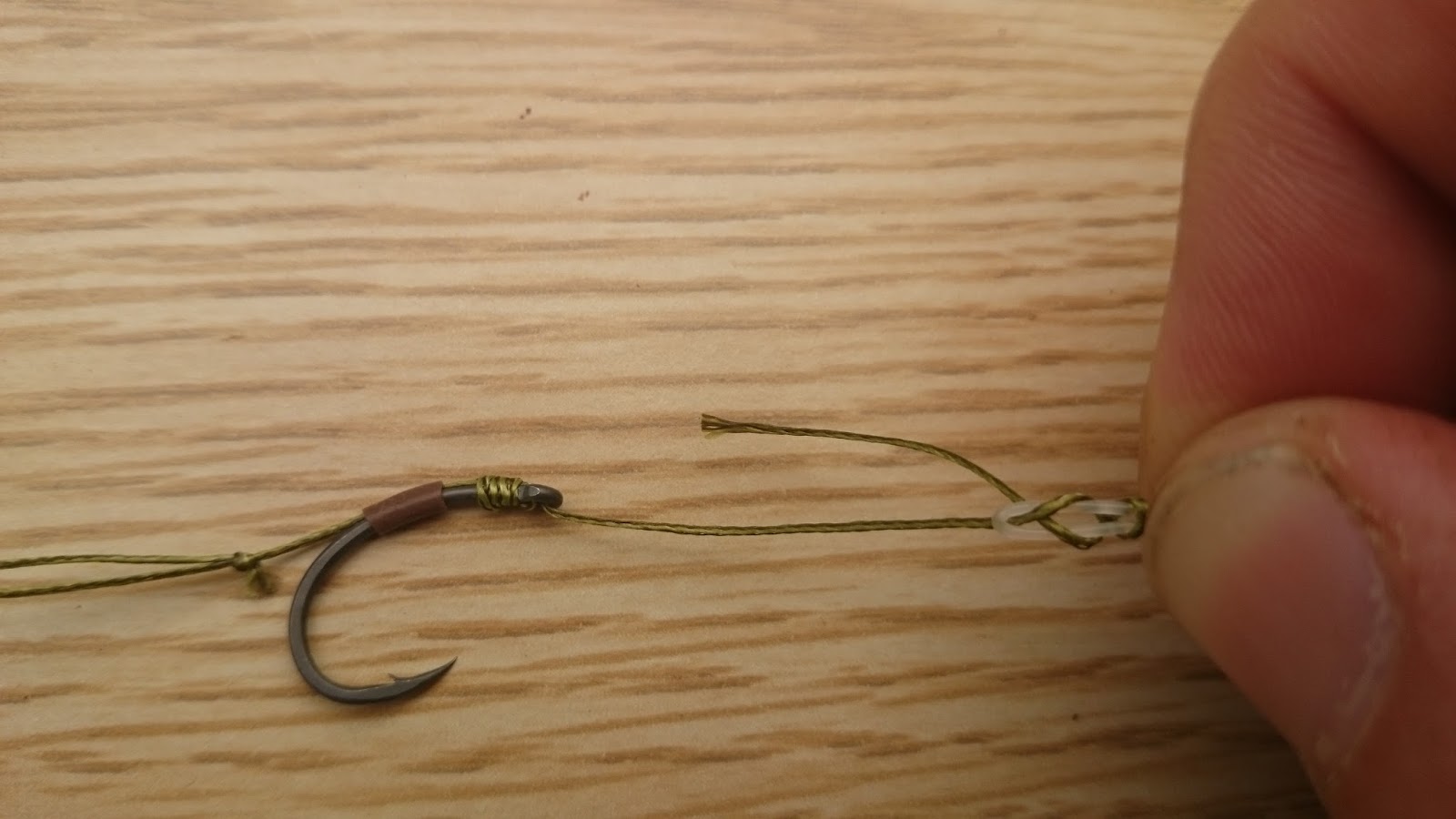 En la otra punta del fluorocarbono formaremos un bucle doblándola y sujetándola entre los dedos